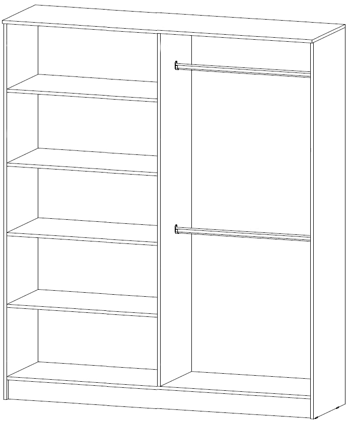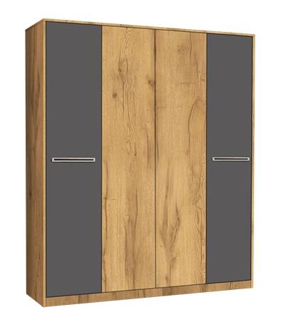 Четырехстворчатый шкаф "Виктория" станет незаменимым помощником в хранении ваших вещей. Модель имеет отделение с хромированной штангой для одежды на вешалках, четыре полки. Изделие выполнено из ЛДСП в цвете дуб золотой и графит серый, дополнено эргономичными ручками.
